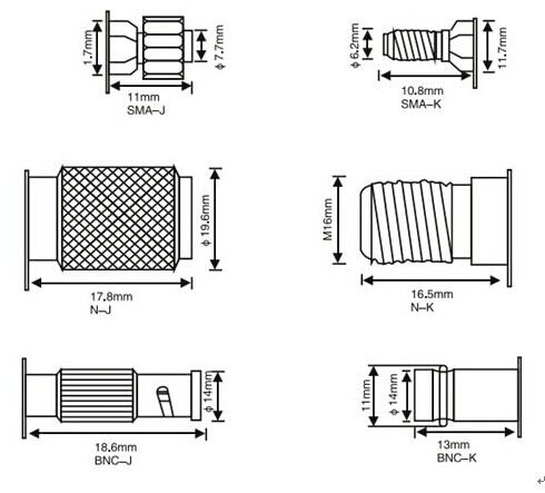 | 同軸天饋信號(hào)防雷器 | CCL-K/BNC | 0~2.0 | 50 | 10 | 20 | 75~100 | ≤550 | ≤1.2 | ≤0.5 | K/K、K/J、J/J |